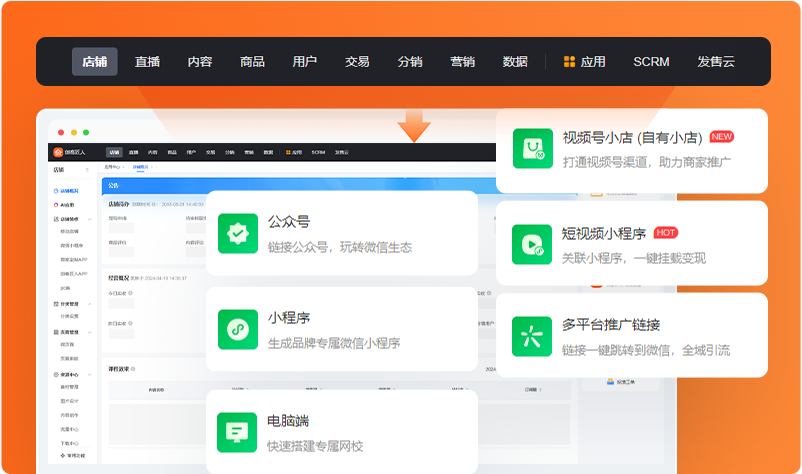 视频号、抖音、快手、多渠道推广、公众号、小程序等多渠道。